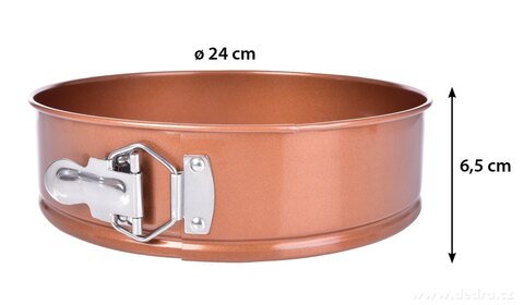 Kulatá rozkládací dortová forma z kvalitní oceli se zlato-měděným prémiovým nepřilnavým povrchem BIOPAN® GOLD, který usnadňuje vyjmutí hotového pokrmu a prodlužuje životnost formy. Skvělá pro dorty, ovocné koláče, cheesecaky, quiche i slané nákypy.