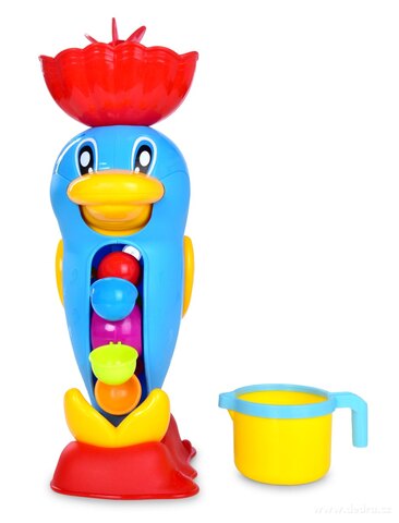HRAČKA DO VODY s otočným vodním mlýnkem a korunkou, součástí konvička na nalévání vody, lze připevnit pomocí přísavky na hladké plochy.