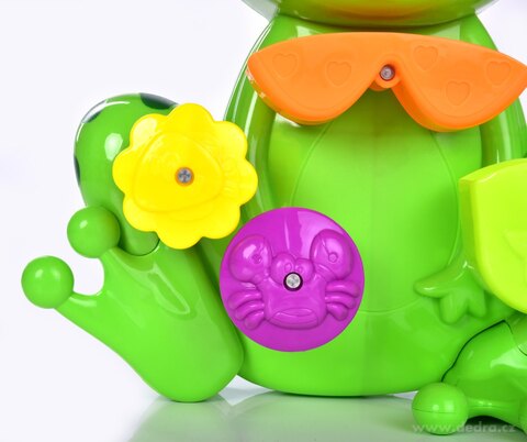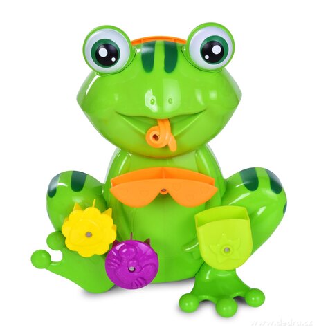 VESELÁ ŽÁBA s otočným vodním mlýnkem, součástí rybička na nalévání vody, lze připevnit pomocí přísavky na hladké plochy.