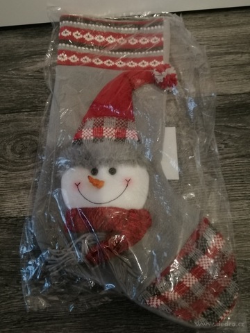 MAXIPUNČOCHA s plastickou aplikací skřítka nebo sněhuláka a poutkem na pověšení, z jemného mikroplyše.