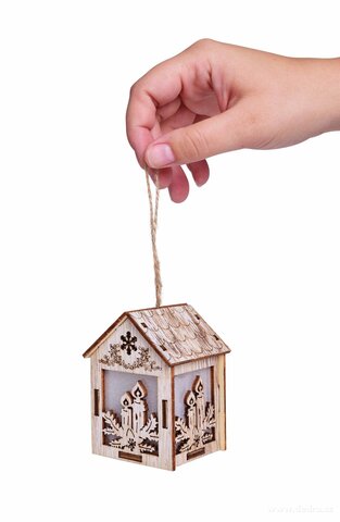 Dřevěný dekorativní domeček s vánočními motivy s LED osvětlením.