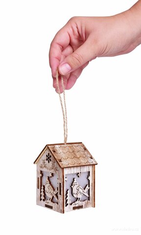 Dřevěná LED dekorace ve tvaru domečku se zimním ptáčkem a vánočními motivy. Vyzařuje teplé světlo a přináší do domova útulnou zimní atmosféru. Ideální na sváteční stůl, parapet i do vánoční výzdoby.