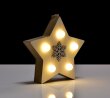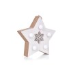 Dřevěný závěsná/stojací hvězda s LED osvětlením, vpředu s bílým finišem a přízdobou. Napájení na 2 tužkové baterie AA 1,5 V.