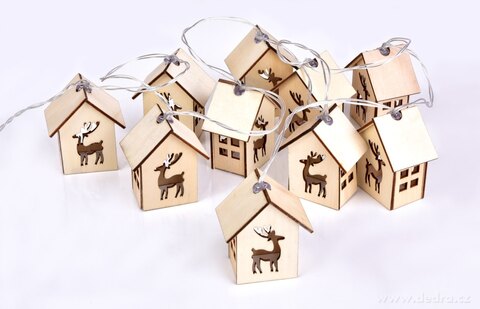 LED svítící řetěz s 10 vyřezávanými domečky.