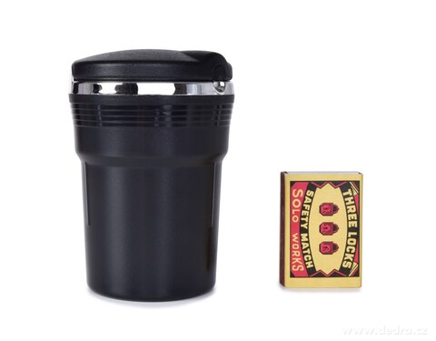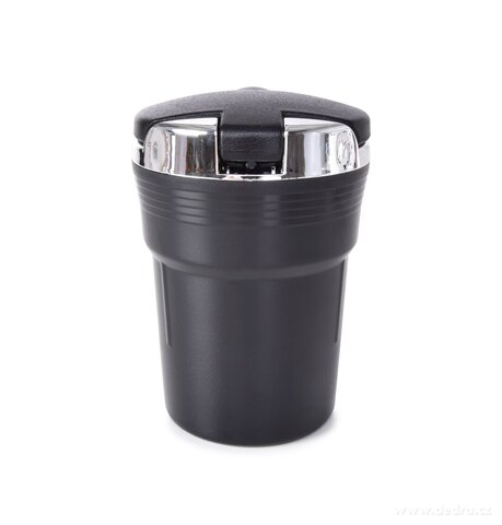 Stylový popelník DRIVE do auta s víkem a automatickým LED osvětlením. Pasuje do většiny držáků na nápoje, brání zápachu a udržuje interiér čistý. Rozměry 7,5 × 6 × 10,5 cm.