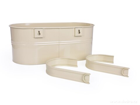 Závěsný truhlík s odnímatelnými háky, lze připevnit i samostatně bez háků na hmoždinky (nejsou