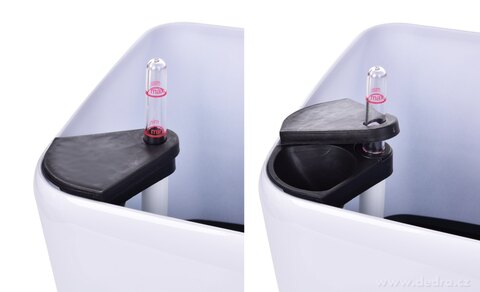 systémem, ve spodní části vypouštěcí ventil, z pevného silnostěnného plastu s bílým lakem vysokého lesku.