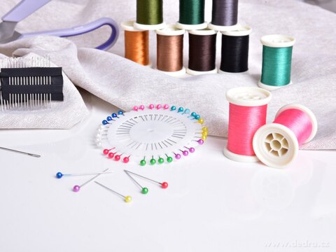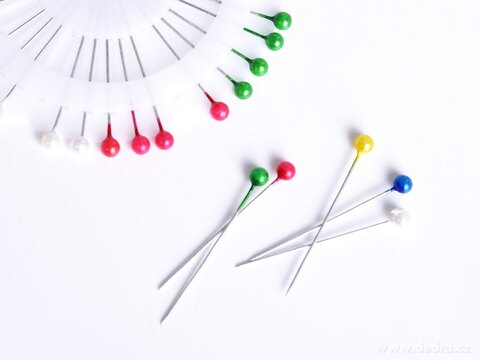 Sada 40 ks špendlíků s barevnou hlavičkou pro šití a tvoření. Délka 3,5 cm, průměr hlavičky 3 mm. Barevná hlavička pro snadné uchopení. Praktické plastové pouzdro s průměrem 7,7 cm pro bezpečné uložení.