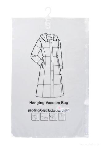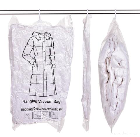 PRAKTIK XL vakuovací pytel 110 × 70 cm s háčkem na ramínka. Ideální na obleky, šaty či bundy. Úspora místa až o 75 %, ochrana před prachem, vlhkostí i moly. Použití s vysavačem.