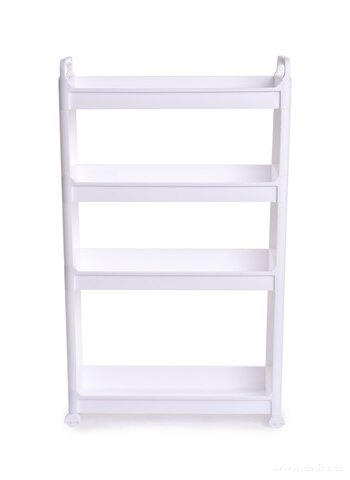 Čtyři patra s perforovanými policemi poskytnou dostatek místa pro úklidové a prací prostředky, toaletní papír, kuchyňské oleje, dochucovadla, kořenky nebo lahve. Díky čtyřem pojezdovým kolečkům regál snadno vysuneš, a tak máš obsah vždy přehledně po ruce.