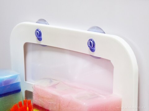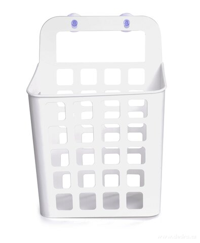 Závěsný koš z odolného plastu se dvěma přísavkami pro snadné a rychlé upevnění na hladké plochy.