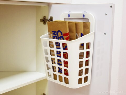 Využiješ do vnitřní strany kuchyňské i koupelnové skříňky např. na tříděný odpad, igelitové tašky, papírové tašky i čisticí potřeby.