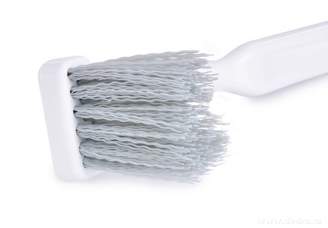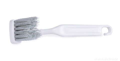 Rohový kartáč ZÁROHÁK s extra dlouhými štětinami (4 cm) dokonale vyčistí obtížně přístupná místa – mezi baterií a umyvadlem, pod okraji WC mísy či v úzkých spárách. Vyroben z odolného plastu, délka 21 cm. Praktický pomocník pro koupelnu i kuchyni.