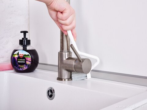 Špína se schovává… ale ZÁROHÁK ji najde! Díky speciálnímu rohovému tvaru a extra dlouhým štětinám (4 cm) vyčistí místa, kam se běžný kartáček nedostane – pod okraj WC mísy, kolem baterie, v rozích sprchového koutu nebo v úzkých mezerách. Ideální pomocník pro všechny „zákeřné kouty“, kde se drží vodní kámen a nečistoty.