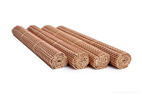 Při ušpinění stačí prostírání otřít vlhkým hadříkem, nechat uschnout a znovu použít. Neskládat napůl, pouze srolovat, aby nedošlo k lámání lamel.
