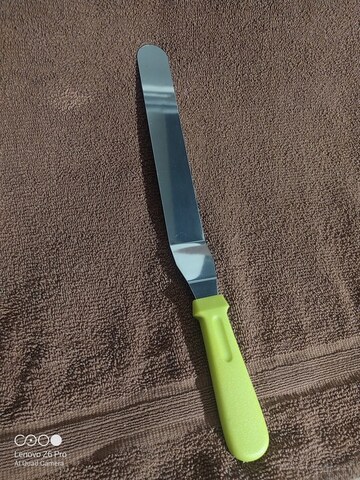 Profesionální roztírací stěrka z nerezové oceli s ergonomickou plastovou rukojetí. Ideální na roztírání krémů, marmelád a cukrářských polev, zarovnávání povrchu dortů a zákusků i na snadné servírování.
