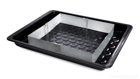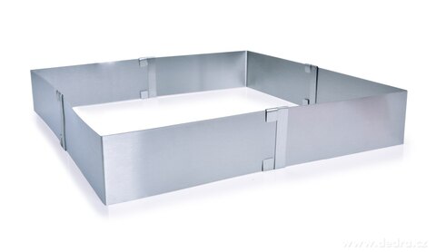 Nastavitelná čtvercová forma CREMO z nerezové oceli, rozměr 15–28 cm. Ideální na dorty, koláče, buchty i slané nákypy. Snadné nastavení velikosti, odolná a snadno čistitelná.