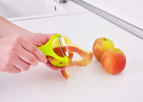 Praktická univerzální kuchyňská škrabka s příčnou čepelí o délce 5 cm je ideální pro loupání veškeré zeleniny i ovoce, které lze snadno zbavit slupky – od brambor a mrkve až po jablka, hrušky či okurky.