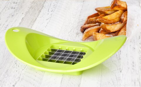 Stačí zeleninu vložit do kráječe a rovnoměrným tlakem protlačit – vzniknou perfektně tvarované hranolky připravené k pečení, smažení nebo vaření.