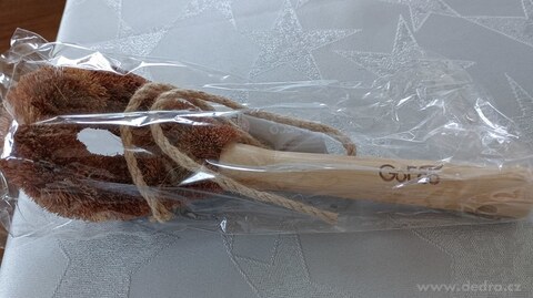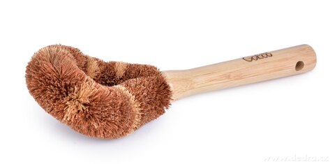 Bambusový kartáč se štětinami z kokosových vláken na čištění a úklid. Délka 23 cm, část s vlákny cca 9 x 7,5 cm.