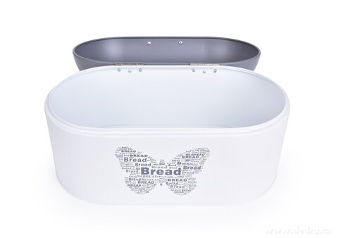 MOTÝL Kovový chlebník s odklápěcím víkem pro snadný přístup k pečivu v originálním designu. Vpředu kovové madlo pro jednoduché otvírání. Rozměry: š 33,5 x h 18 x v 20 cm