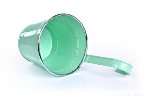 Závěsný nebo stojící kovový květináč, objem cca 1800 ml, rozměry: průměr 15,5 cm, výška 14,5 cm (s hákem 26,5 cm- součást květináče - nelze odnímat).