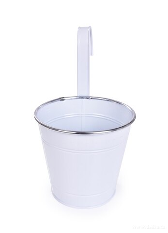 Závěsný nebo stojící kovový květináč, objem cca 1800 ml, rozměry: průměr 15,5 cm, výška 14,5 cm (s hákem 26,5 cm - součást květináče - nelze odnímat).
