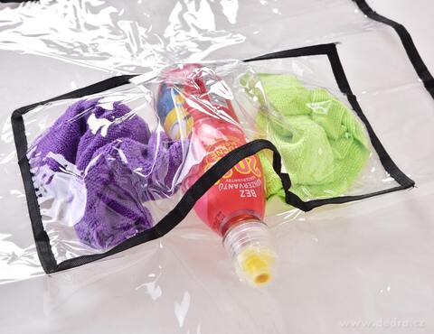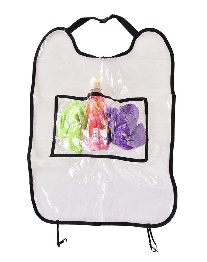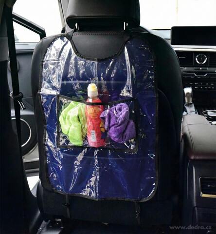 Praktický transparentní kapsář DRIVE na přední sedadlo auta s 3 kapsami. Chrání čalounění proti okopání, je omyvatelný a snadno upevnitelný. Rozměry 42,5 × 60 cm. Ideální pro udržení pořádku v autě.