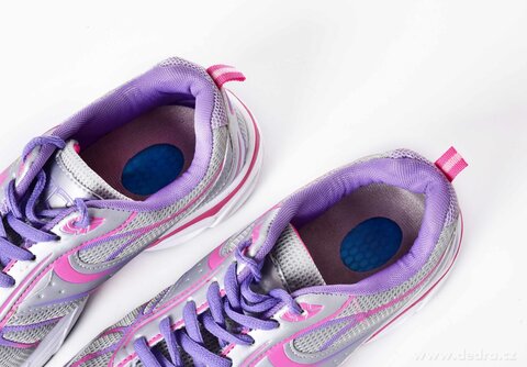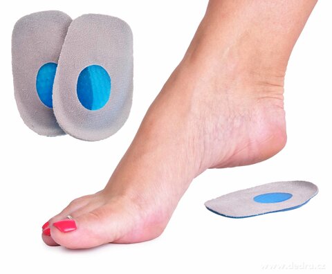 Střed podpatěnky tvoří měkký silikonový gel, který odlehčuje patní kost v místě největší zátěže – ideální prevence i pomoc při bolestech pat a patních ostruhách.