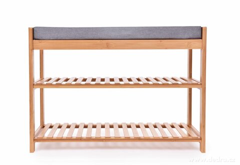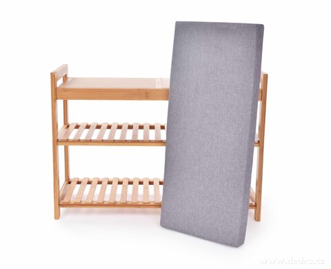 BAMBUSOVÝ BOTNÍK/LAVICE s polstrovaným sedákem a 2 policemi.