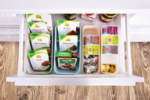 ORGANIZÉR z pevného odolného plastu s dělícími přihrádkami. 3 přihrádky, š 26,5 x h 13 x v 8 cm.