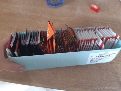 ORGANIZÉR z pevného odolného plastu s dělícími přihrádkami. 5 přihrádek, š 26,5 x h 8,8 x v 6 cm.