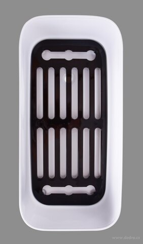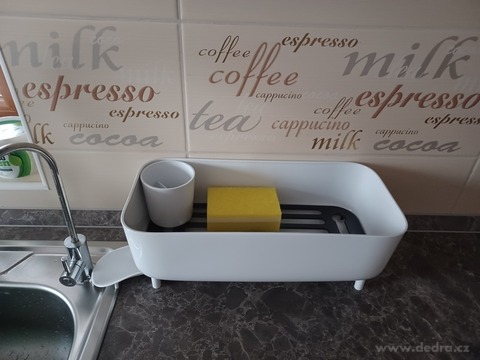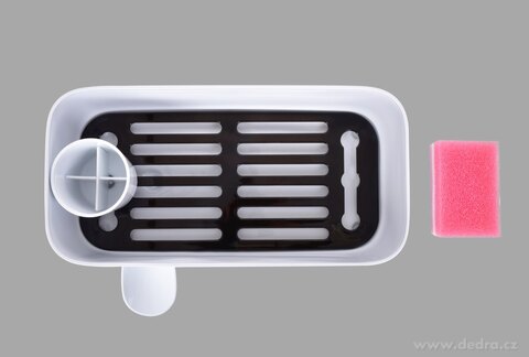 DRENAGE je chytrý odkapávač s nastavitelným okapem, který odvádí přebytečnou vodu přímo do dřezu, takže ti kolem dřezu nevznikají loužičky. Uvnitř najdeš vyjímatelnou vložku na talíře, držák na příbory s variabilním umístěním, a navíc praktickou houbičku na mytí. Lehce se udržuje, nezabírá příliš místa – a přitom pojme vše potřebné pro každodenní mytí nádobí.