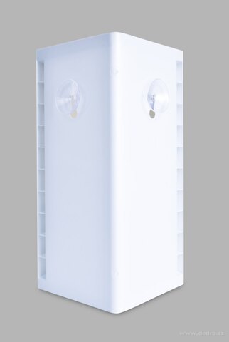 360° otočná rohová police/skříňka, vyrobena z odolného plastu. Součástí balení 2 přísavky, 2 silikonové samolepící podložky a lepidlo. Rozměry: š 25,5 x h 20,5 (otevřená 28 cm) x v 41,5 cm.