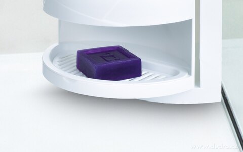 Ve spodní části praktická polička s vyjímatelným roštem pro snadné čištění např. na mýdlo