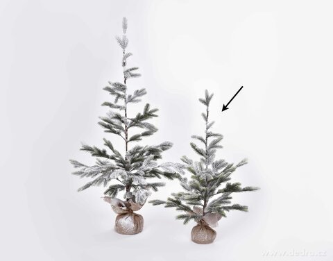 Dekorativní zasněžený smrk vysoký 90 cm s jutovým podstavcem v severském stylu. Jemně ojíněné větve působí jako čerstvě zasněžené a přinášejí do interiéru kouzlo přírody a nostalgii zimní pohody.