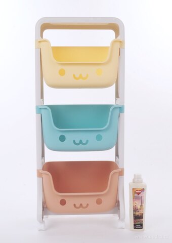 Pořádek v dětském pokoji už nebude jen sen! Regál TRIO se třemi hlubokými barevnými boxy udělá z uklízení hračky hru. Díky veselým barvám děti uklízení baví, a rodiče mají konečně přehled, kde co je. Stabilní a lehká konstrukce navíc umožní snadné přemístění díky praktickým kolečkům.