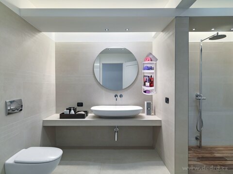 Ve spodní části praktická polička s vyjímatelným roštem pro snadné čištění např. na mýdlo