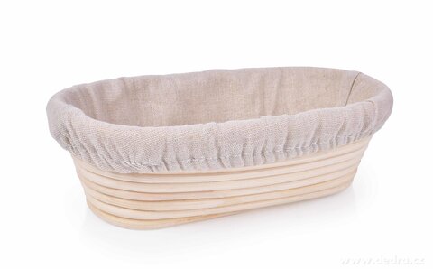 GoEco® dřevěná ošatka PECEN o délce 24 cm s odnímatelným látkovým potahem je ideální pro domácí pekaře, kteří chtějí upéct chléb o hmotnosti kolem 600 g. Udržuje těsto ve správném tvaru během kynutí, zajišťuje rovnoměrné propečení a dodává bochníku atraktivní křupavou kůrku. Potah z lněné látky zachytí mouku, usnadňuje vyklápění těsta a lze jej snadno prát.