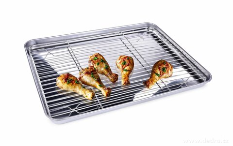 GoEco® 2v1 mřížka s nerezovým plechem 40 × 30 cm pro pečení, chladnutí a zdobení pečiva. Rovnoměrné propečení, snadná údržba a univerzální využití v kuchyni.