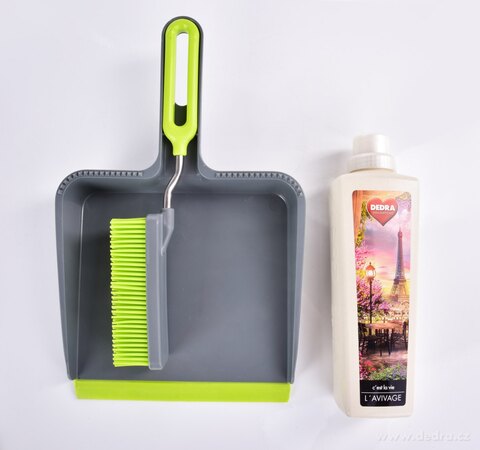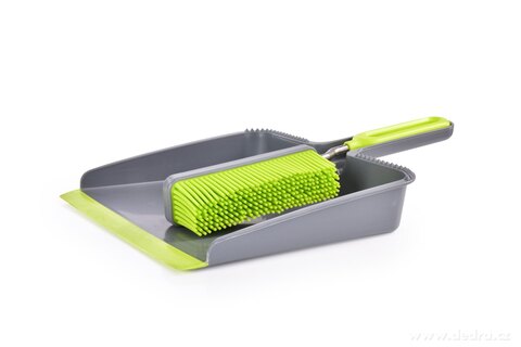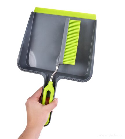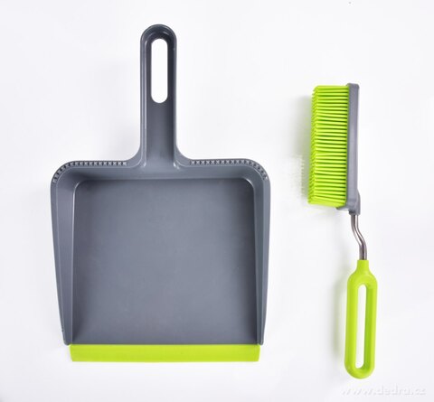 LOPATKA a SMETÁČEK, ve vrchní části lopatky hroty pro očištění smetáčku, smetáček lze snadno zacvaknout do lopatky. Rozměry: 22,5 x 36 x 5 cm