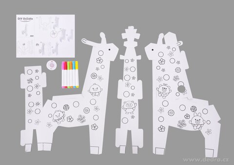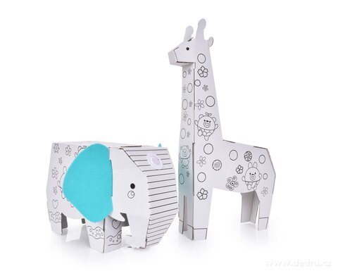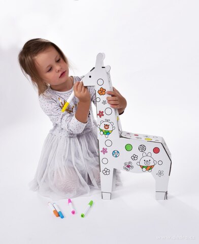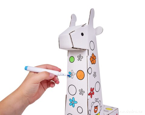 3D skládací omalovánka z tvrdého kartonu + 6 barevných fixů.