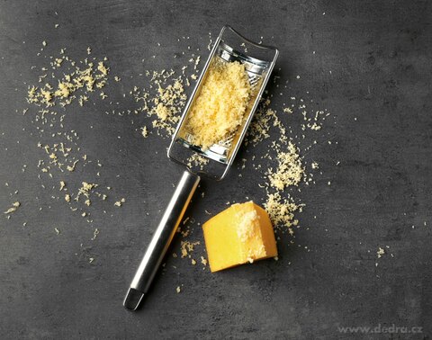 Ruční jemné struhadlo GOURMET z lesklé nerezové oceli, délka 23 cm, ideální na strouhání parmezánu, čokolády, tvrdého pečiva a dalších surovin.