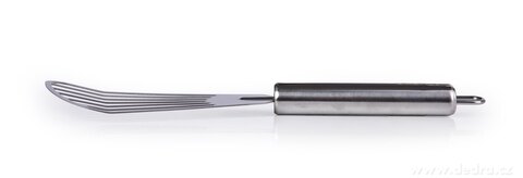 Profesionální nerezová mřížkovaná obracečka GOURMET z lesklé oceli pro snadné obracení a servírování jídel. Ideální na palačinky, omelety, řízky, lasagne i zapékané pokrmy.