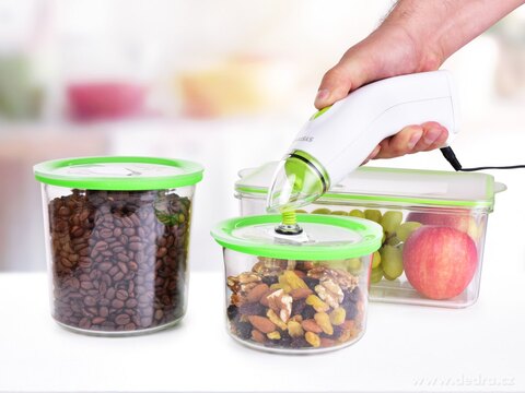 Tritanová vakuovací dóza VZDUCHOCUC (600 ml) uchová potraviny déle svěží, chutné a voňavé pomocí vakuového systému s ventilem ve víku a silikonovým těsněním. Po odsátí vzduchu automatickou vakuovačkou vytváří hermetické a vzduchotěsné vakuum, které zpomaluje proces stárnutí potravin. Vyrobena z odolného TRITANU® bez BPA, který je hygienický, průhledný jako sklo, ale nerozbitný.