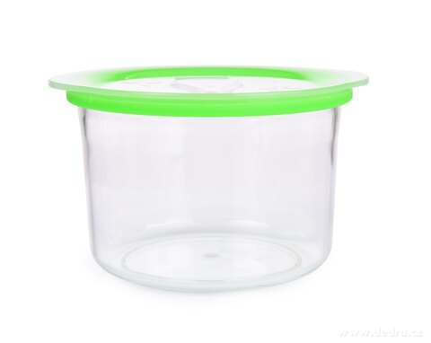 TRITANOVÉ DÓZY na potraviny s ventilem pro odsávání vzduchu pomocí automatické vakuovačky, víko se silikonovým těsněním. Silnostěnné provedení, materiál TRITAN (bez obsahu BPA). Kulatá, průměr 13 cm (šíře s ušima 14 cm)