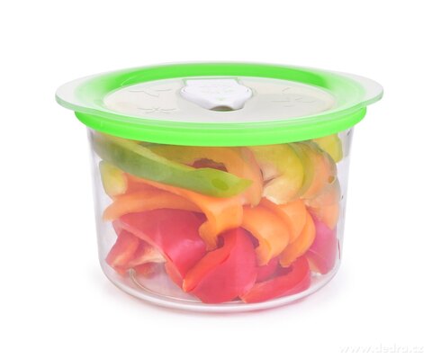 Vakuovací dóza VZDUCHOCUC 600 ml z Tritanu® s ventilem a silikonovým těsněním udrží potraviny déle čerstvé. Hermetická, vzduchotěsná, nepohlcuje pachy ani barvy jídel. Vhodná do myčky, mikrovlnky, lednice i mrazničky.