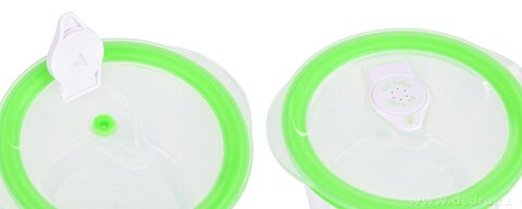 Dózu lze mýt v myčce nádobí, používat v lednici i mrazničce. Před ohřevem v mikrovlnné troubě odstraň víko nebo odklop ventil. Víčko doporučujeme mýt ručně kvůli zachování těsnění.