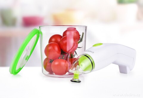 – Pomocí automatické vakuovačky, která se nasadí na ventil ve víku.