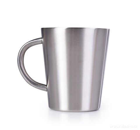 Dvoustěnný nerezový termo hrnek 300 ml udrží nápoj déle teplý či studený, je nerozbitný a vhodný na cesty, grilování i každodenní použití.